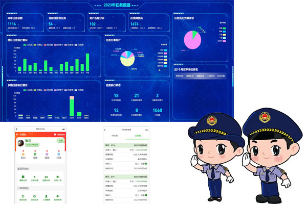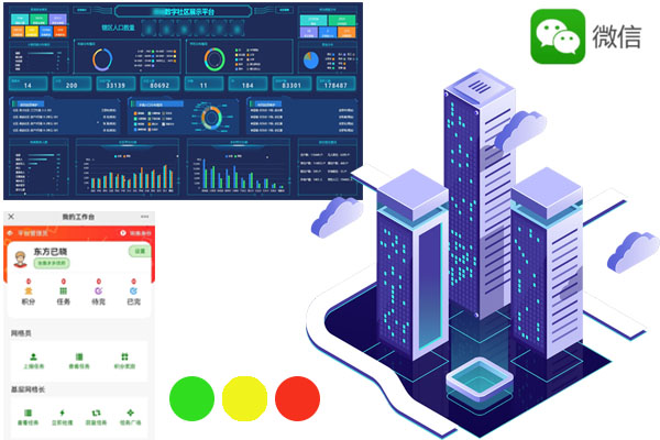 采用数字网格管理模式,以虚拟数字网格映射社区或楼栋、单元,实现网格内事务网格内解决,绿、黄、红三色任务状态管理,可追溯、可考核。网格长、网格员角色权限可自由设置。