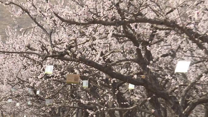 又是一年春意暖,杏花枝头闹。在蒲上镇辛庄村金实农业基地,果农陈彦龙正在往杏树上挂上认购牌。